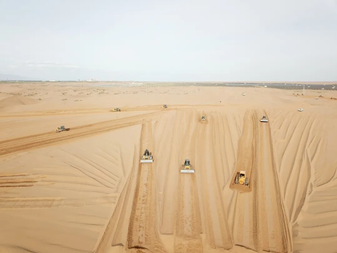 截至目前,中廣核在庫布其沙漠建成了五座光伏電站。自2018年以來,庫布其一期項目、格桑光伏領跑者項目、庫布其二期項目、白鷺、明德領跑者光伏電站先后投產。