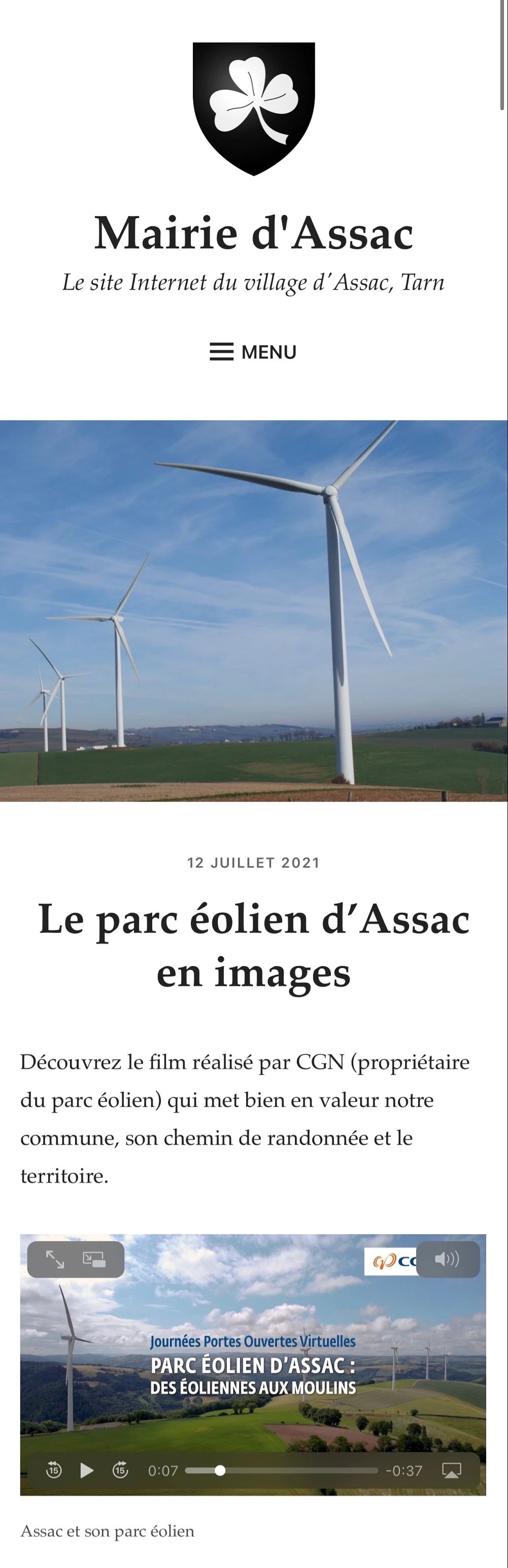 Assac市政府在其官方網站主頁發布中廣核歐能公司Assac風電場介紹,以及此次云開放活動的視頻。