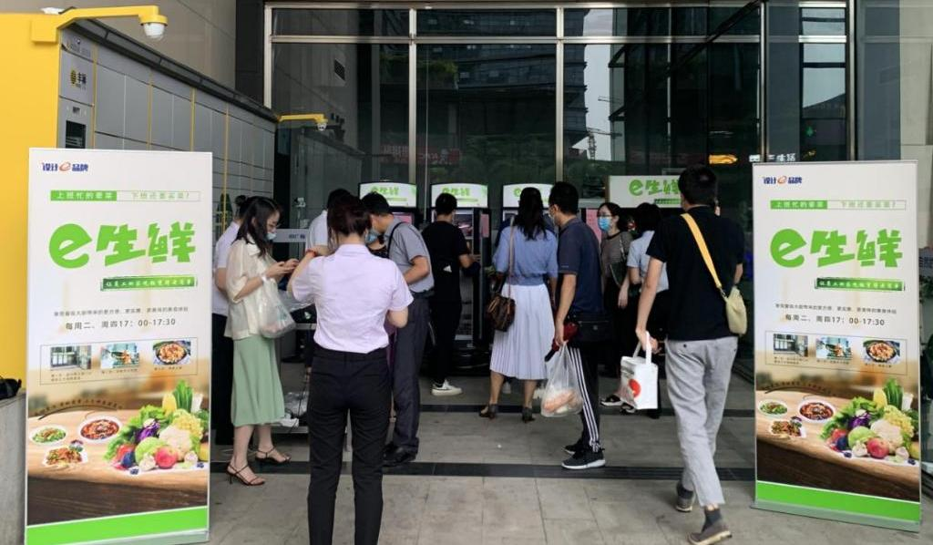 ▲員工下班后紛紛到“生鮮e站”領(lǐng)取提前訂好的半成品菜