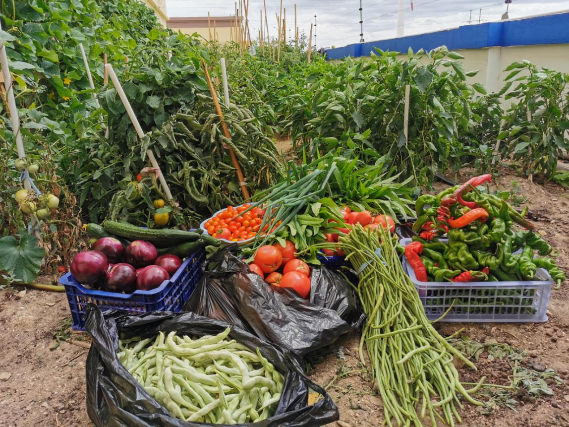 一些風(fēng)電場(chǎng)遠(yuǎn)離城市,地處偏遠(yuǎn)荒漠戈壁地區(qū),“如遇惡劣天氣,蔬菜瓜果不能及時(shí)供給,甚至出現(xiàn)一菜難求情況”。為此,中廣核各新能源場(chǎng)站合理規(guī)劃用地,相繼成立“小菜園-能量大棚”,結(jié)合當(dāng)?shù)貧夂蛱鞖猓奶暨x播種時(shí)令果蔬。“小菜園”不僅讓員工吃上了放心菜,還成為員工線下“開(kāi)心農(nóng)場(chǎng)”,給單一的業(yè)余生活增添了許多色彩。