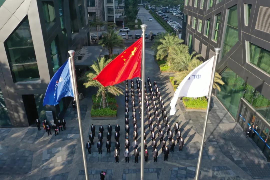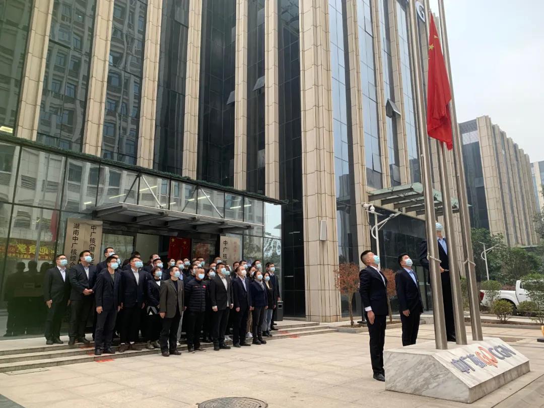 ▲中國廣核新能源控股有限公司湖南分公司在長沙辦公大樓前坪舉行升旗儀式