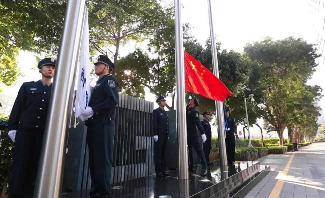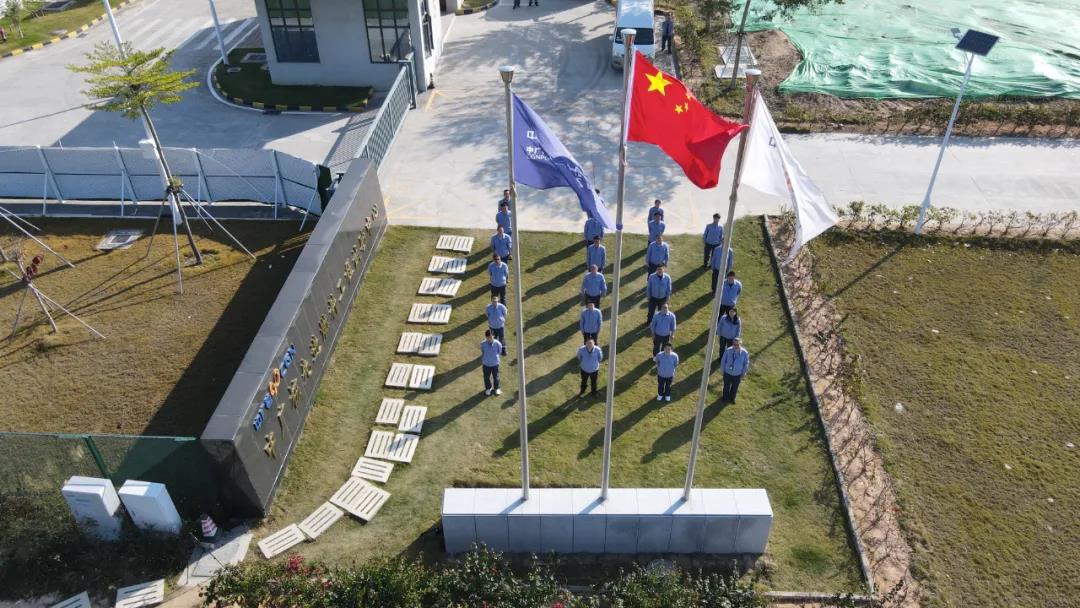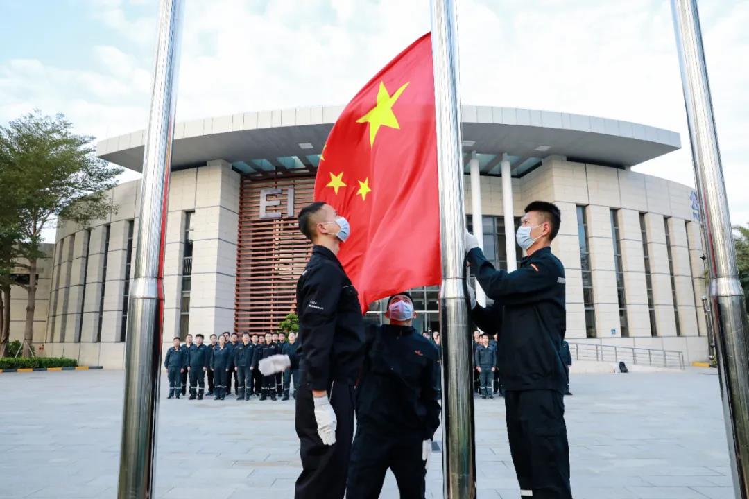 ▲中廣核工程有限公司在大亞灣核電基地舉行升旗儀式