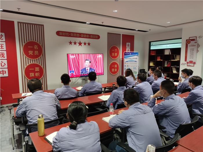 中廣核環(huán)保產(chǎn)業(yè)有限公司團(tuán)委組織團(tuán)員青年等通過集中觀看、網(wǎng)絡(luò)收看等方式觀看黨的二十大開幕直播。