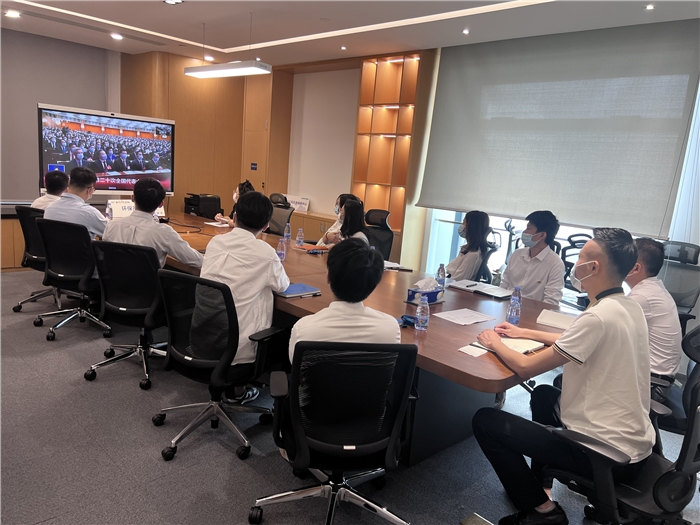 中廣核資本控股有限公司團(tuán)委組織各團(tuán)組織和團(tuán)員青年觀看黨的二十大開幕盛況。