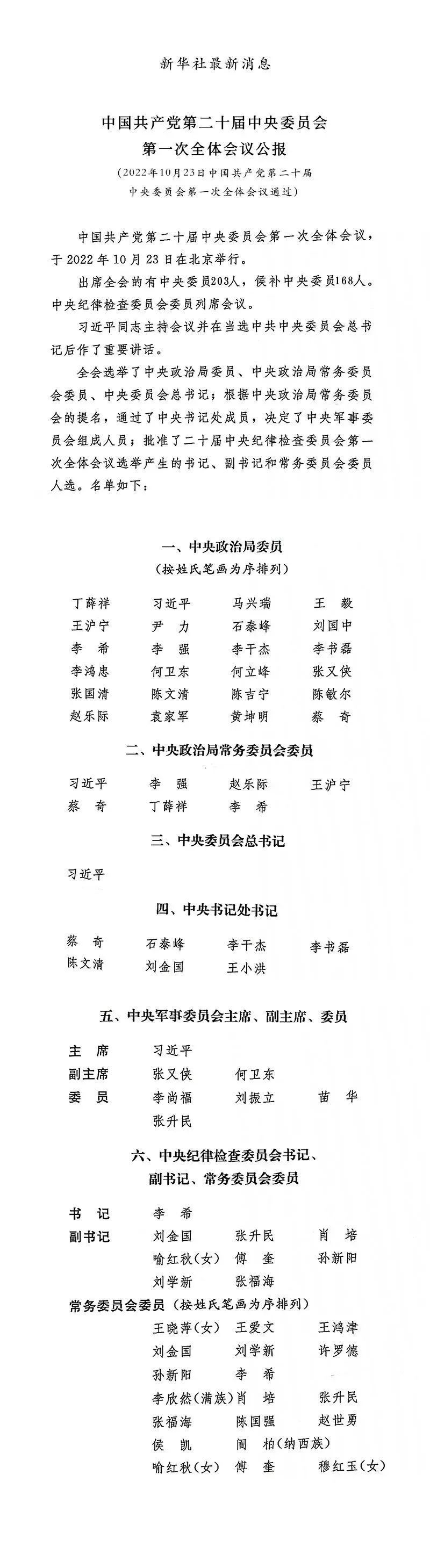 中共二十屆一中全會(huì)公報(bào)