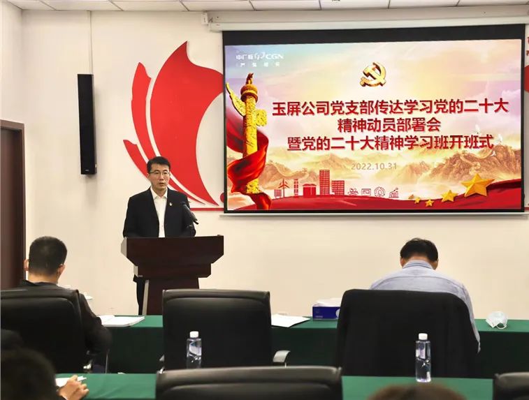 10月31日,玉屏公司組織召開了傳達學(xué)習(xí)黨的二十大精神動員部署會。 會議要求,一要統(tǒng)一思想、高度重視,充分認識到黨的二十大的重大意義,把學(xué)習(xí)宣傳貫徹黨的二十大精神作為當(dāng)前和今后一個時期的首要政治任務(wù)抓緊抓牢抓實;二要把握主題,全面準(zhǔn)確學(xué)習(xí)領(lǐng)會黨的二十大提出的新思想新論斷新任務(wù)新要求;三要精心安排,認真組織,在學(xué)懂弄通做實上下功夫。切實把學(xué)習(xí)成效轉(zhuǎn)化為全方位推進工作高質(zhì)量發(fā)展的具體行動和實際成效,以昂揚的精神狀態(tài)為中廣核高質(zhì)量發(fā)展貢獻力量。