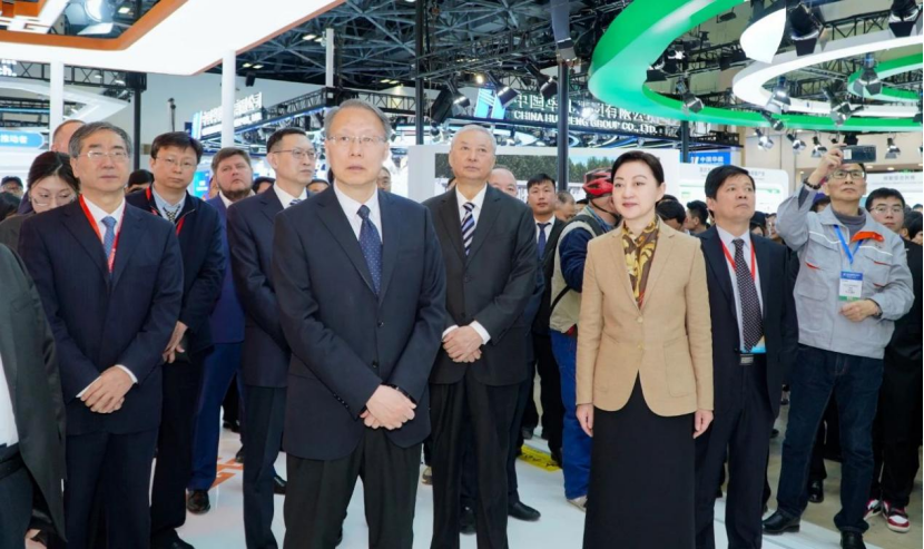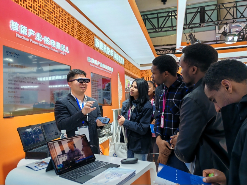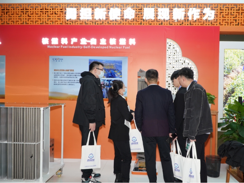 開幕式后,與會(huì)嘉賓來(lái)到中廣核展臺(tái),聽取并了解中廣核近年來(lái)在“華龍一號(hào)”批量化建設(shè)、科技創(chuàng)新等方面的高質(zhì)量發(fā)展成果。