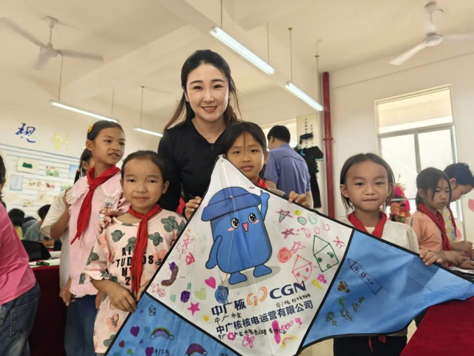 同期,中廣核運營團委也前往覽金小學開展志愿活動,為小朋友們帶去了創意風箏繪制,投壺、核電科普小課堂等互動活動,還進行了定點家訪。