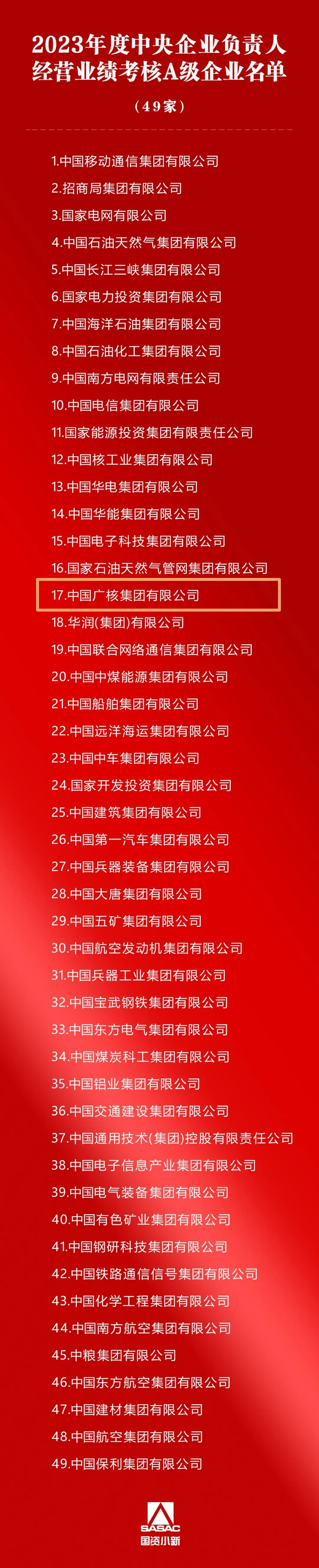 中廣核獲評2023年度中央企業負責人經營業績考核a級