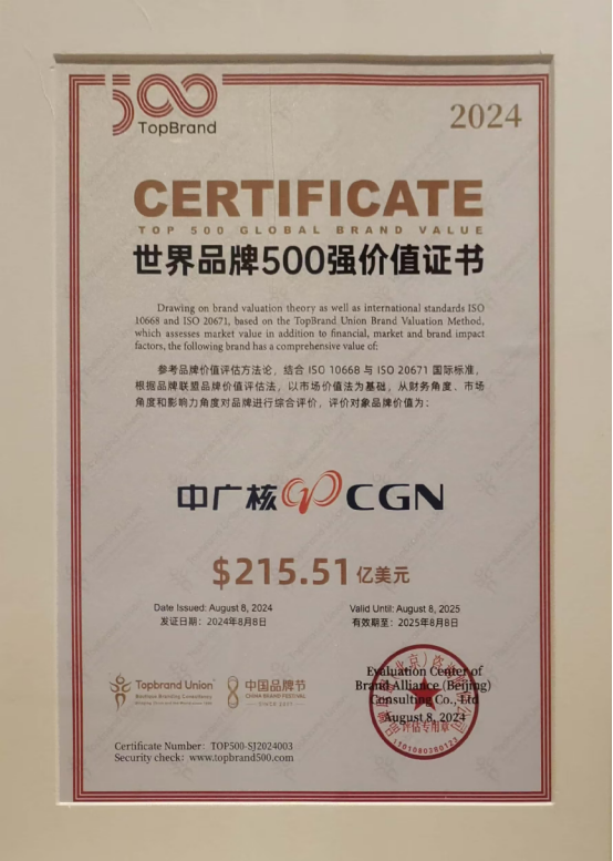 近日,以“新質與突圍”為主題的2024第十八屆中國品牌節在廣州舉辦,來自政、商、產、學、媒等各領域的8000余名嘉賓齊聚一堂,交流品牌建設心得體會,探討品牌發展經驗與挑戰,攜手推動民族品牌的突破與躍升。活動期間,發布了“TopBrand世界品牌500強”“TopBrand中國品牌500強”等品牌榜單。中廣核首次進入世界品牌500強,以215.51億美元的品牌價值位列第490位,與中國石油、國家電網、華為、騰訊等99家中國企業共同上榜。