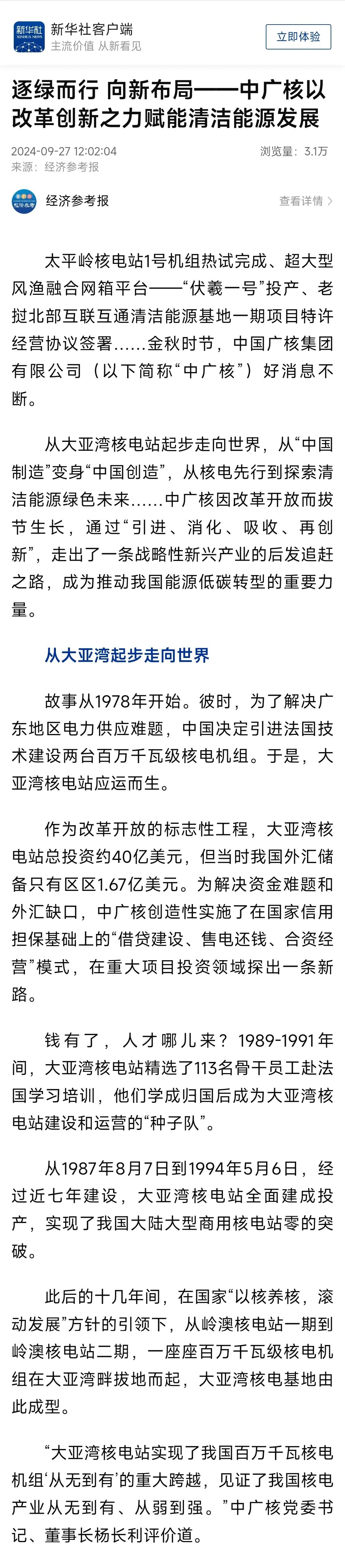 以《中國廣核集團:砥礪奮進譜華章 追“新”逐“綠”創未來》為題