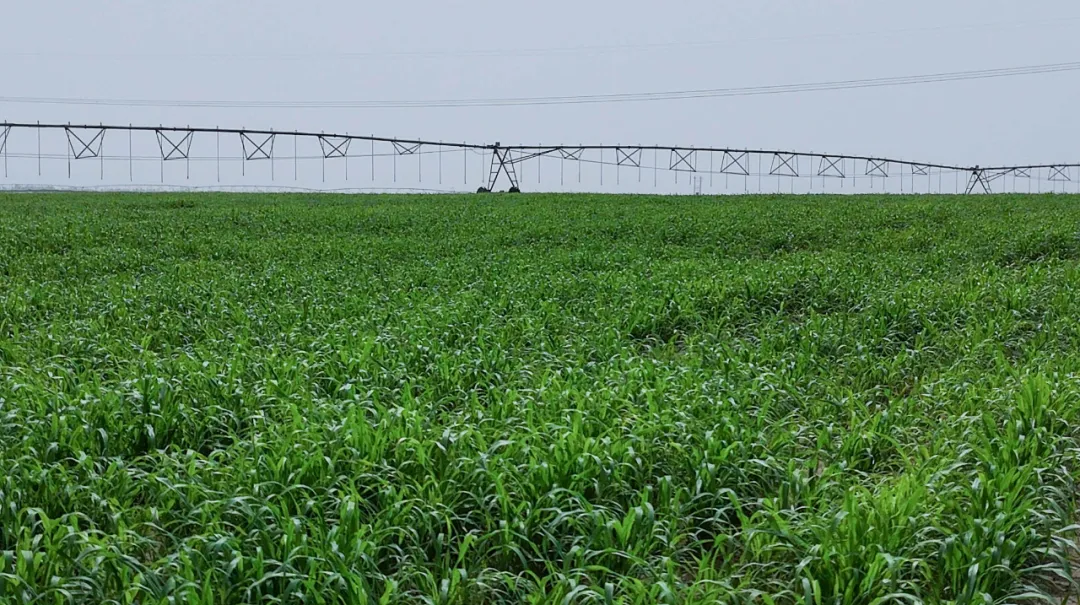 和田洛浦萬畝光伏治沙項目總面積2.2萬畝,其中種植美洲狼尾草(復播紫花苜蓿)4027畝,種植耐旱植物(采用9個種類的植物種植混播)5830畝,防風林(含草方格)187畝,剩余1.2萬畝地的光伏建設和覆綠同步進行中。項目采用國內企業自主研發的“沙膜”技術,在沙地表面20厘米處施加植物纖維黏合劑,使原本離散的沙體能保水、保肥,形成適合作物生長的土壤結構。同時,項目安裝的光伏板不僅能將太陽能轉換為電能,還能讓光伏板下的土壤避免太陽直射,減少水分的蒸發。項目每年可新增苜蓿等干草飼料供應約3000噸,可滿足400頭牛或5000只羊的飼草要求,能夠帶動當地稅收和就業,增加農戶和養殖企業收入。