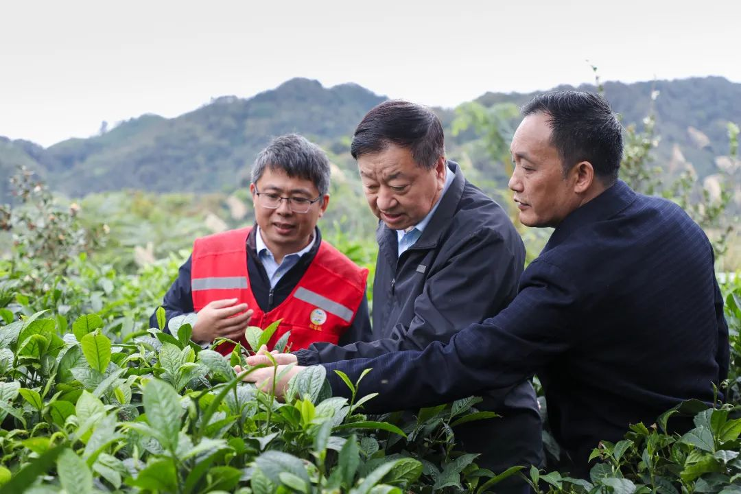 ▲楊長利實地查看隴槐村茶葉種植情況