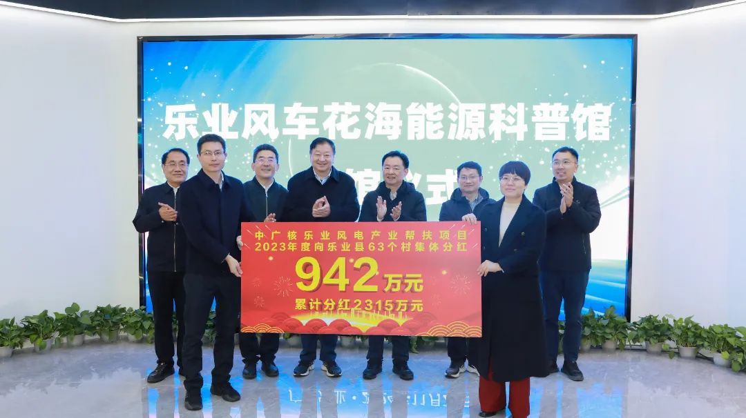 樂業風電項目創新采用“入股分紅+贈股分紅+保底收益”模式,一攬子帶動村集體經濟快速壯大。2024年,項目向樂業縣63個脫貧村集體第3次分紅942萬元,累計分紅2315萬元,有效帶動村集體經濟發展。為配合樂業縣政府深度打造“風車花海”景區,帶動文旅產業快速發展,2023年,集團繼續投入700萬元無償幫扶資金,援建能源科普館,為地方打造高品質的新能源科普教育基地。