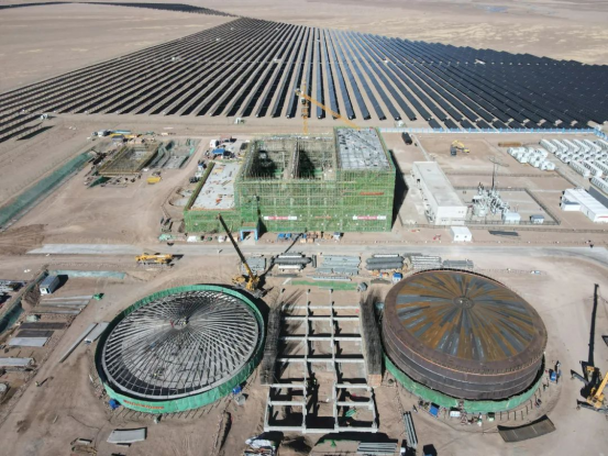 ▲中廣核阿里“零碳”光儲(chǔ)熱電示范項(xiàng)目當(dāng)中的50兆瓦光熱項(xiàng)目正在建設(shè)中
