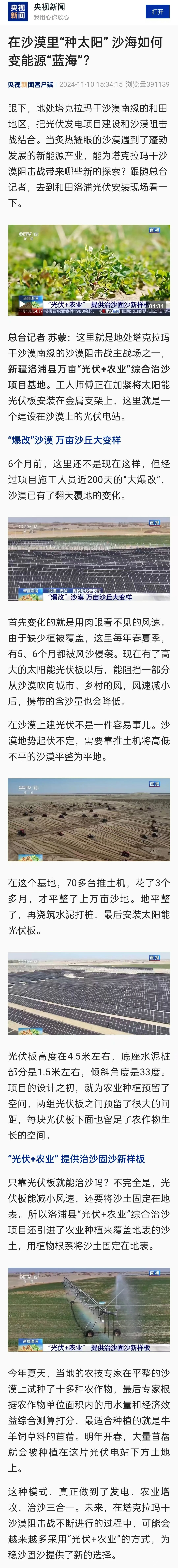 和田地區(qū)位于新疆維吾爾自治區(qū)最南端,總面積24.74萬平方公里,其中山地占33.3%,沙漠戈壁占63%,綠洲僅占3.7%,風沙常年困擾該地區(qū)。而如今,廣袤的沙漠邊緣,曾經(jīng)的不毛之地呈現(xiàn)出一片生機勃勃的景象。光伏治沙項目的推進,不僅讓黃沙漫天的景象得到了有效遏制,更為農(nóng)作物的種植開辟了新天地。
