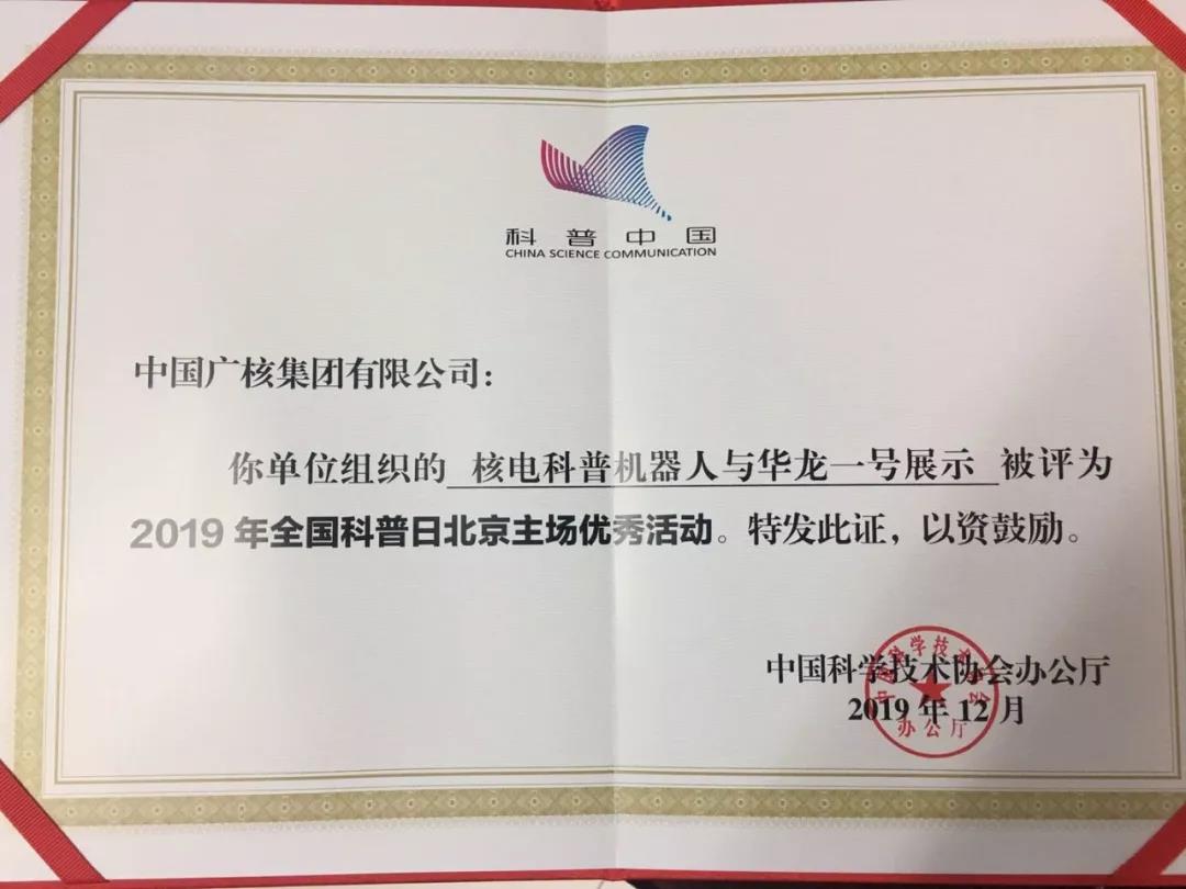 獲得“2019年全國科普日北京主場優(yōu)秀活動”